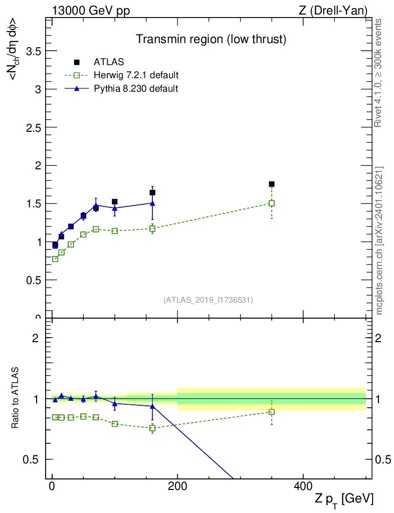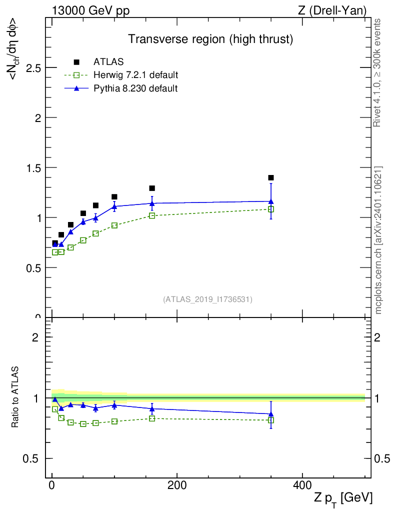 Z (Drell-Yan) : Underlying event : <Nch> vs p