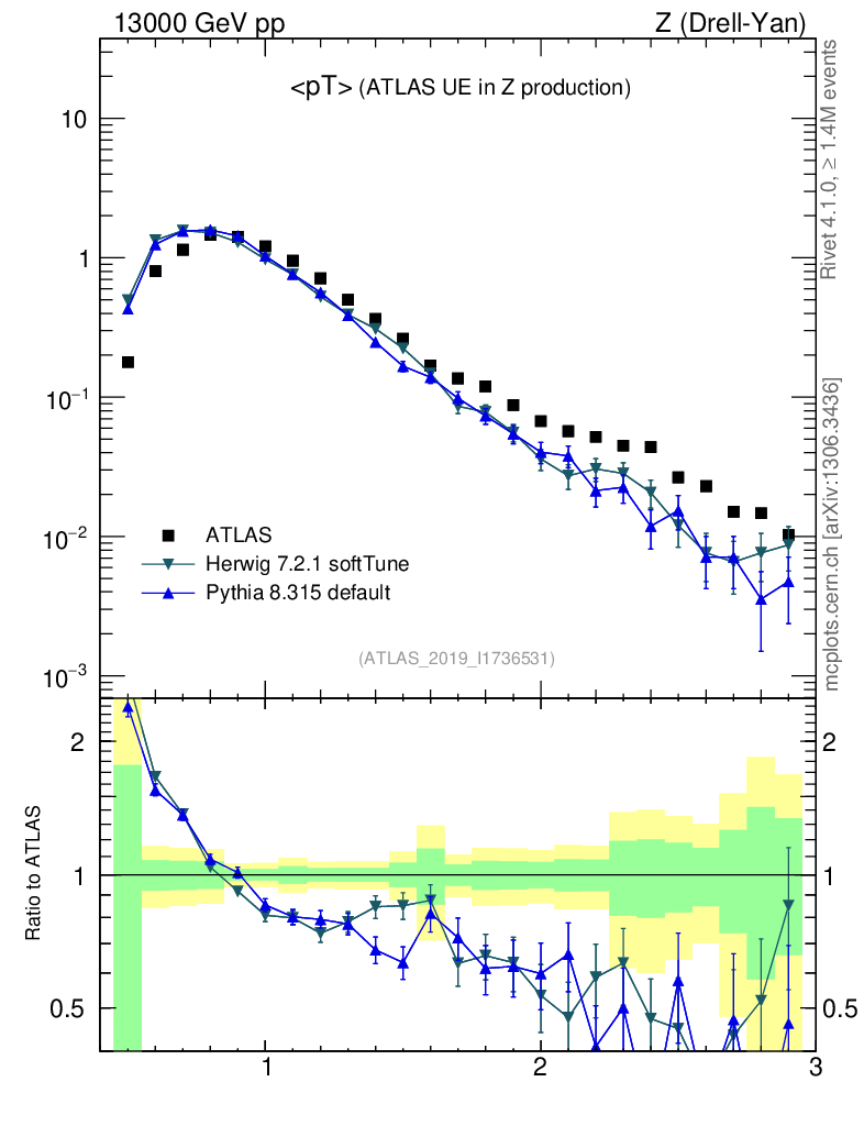 Z (Drell-Yan) : Underlying event : <pT>