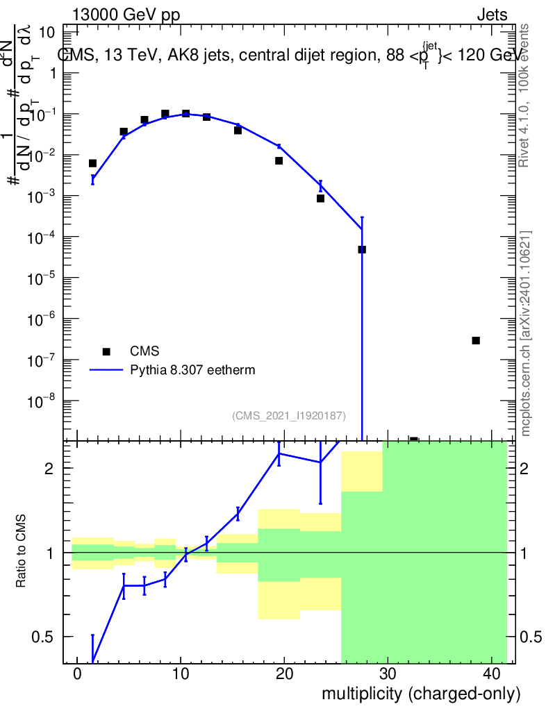 Lines: data, pythia8 8.307 eetherm |