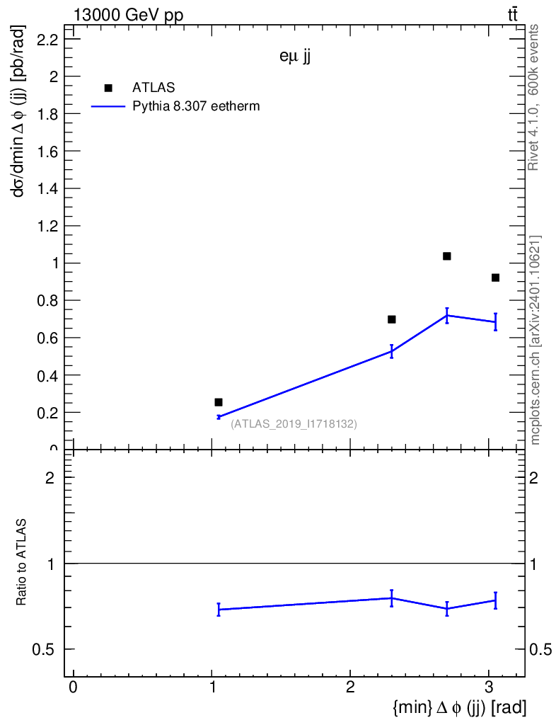 Lines: data, pythia8 8.307 eetherm |