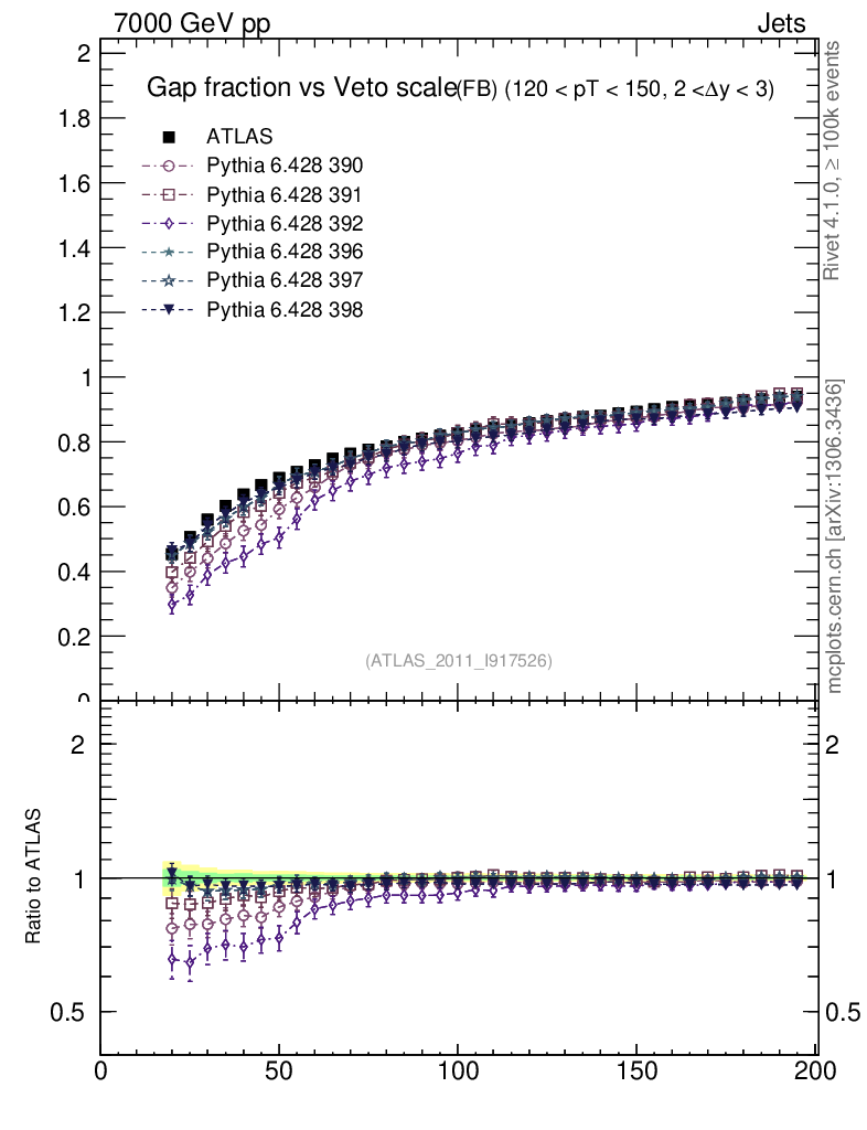 Jets : Jets + Veto : Gap frac. vs Veto scale (FB)
