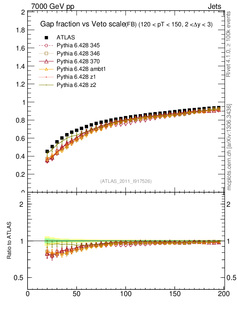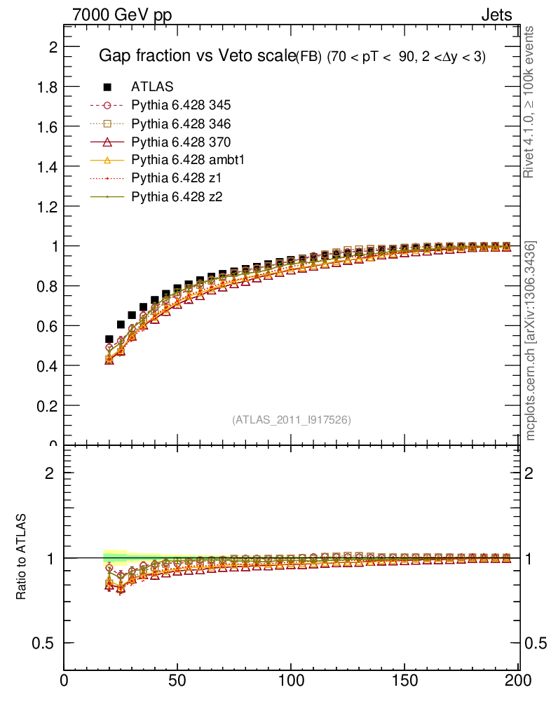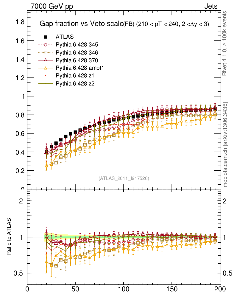 Jets : Jets + Veto : Gap frac. vs Veto scale (FB)