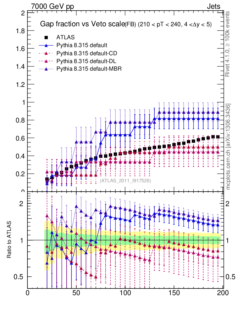 Jets : Jets + Veto : Gap frac. vs Veto scale (FB)