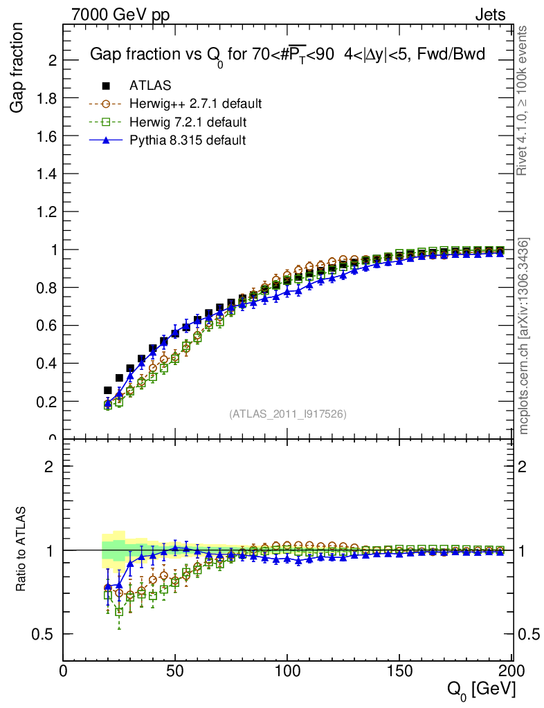 Jets : Jets + Veto : Gap frac. vs Veto scale (FB)