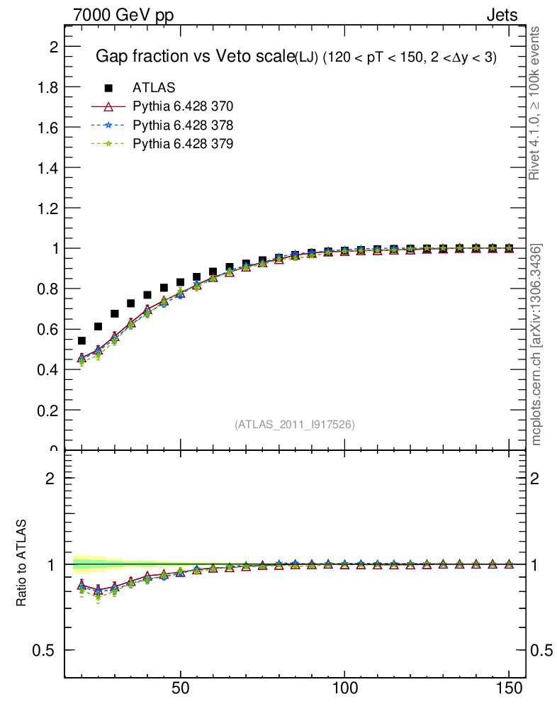 Jets : Jets + Veto : Gap frac. vs Veto scale (LJ)