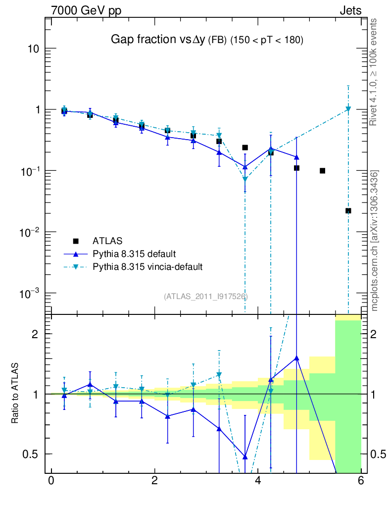 Jets : Jets + Veto : Gap fraction vs Δy (FB)