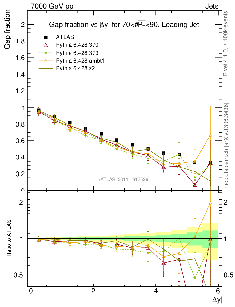 Jets : Jets + Veto : Gap fraction vs Δy (LJ)