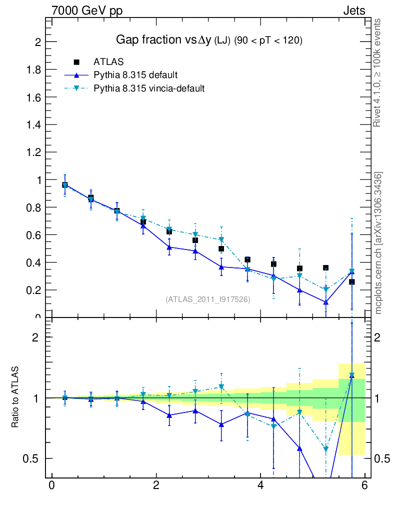 Jets : Jets + Veto : Gap fraction vs Δy (LJ)