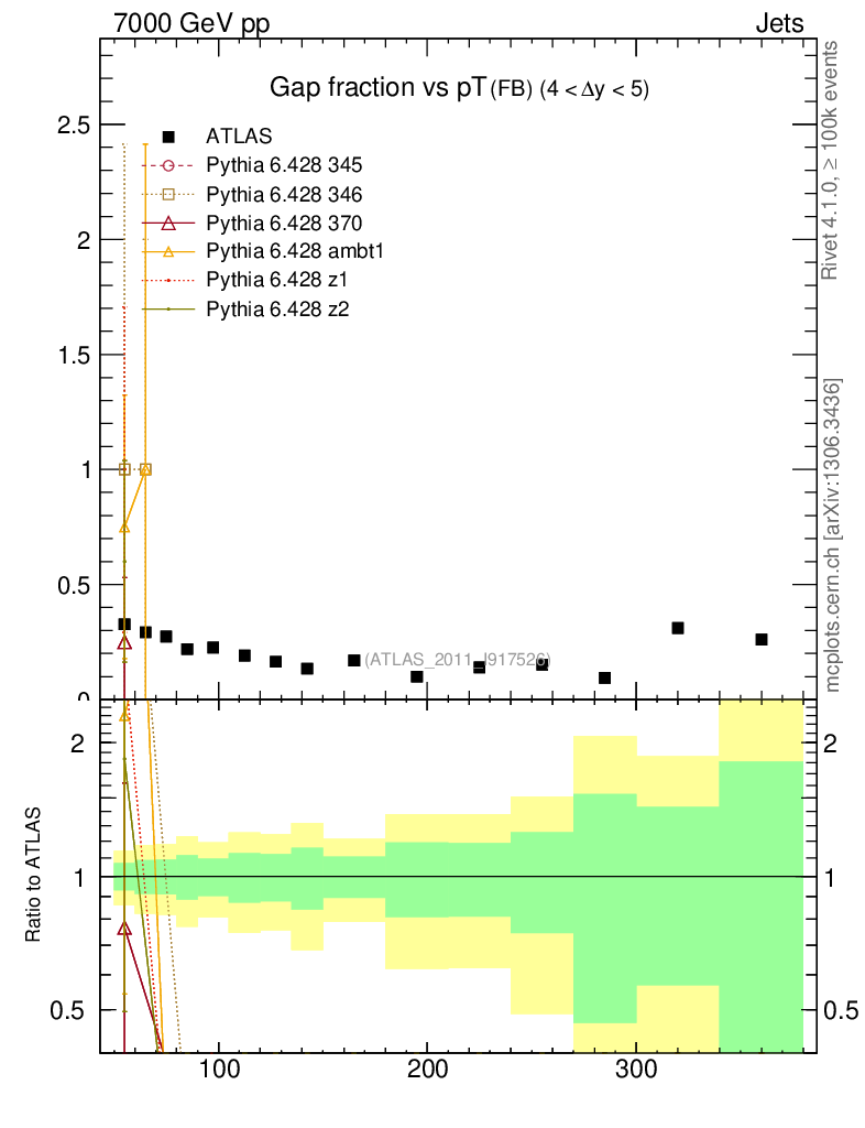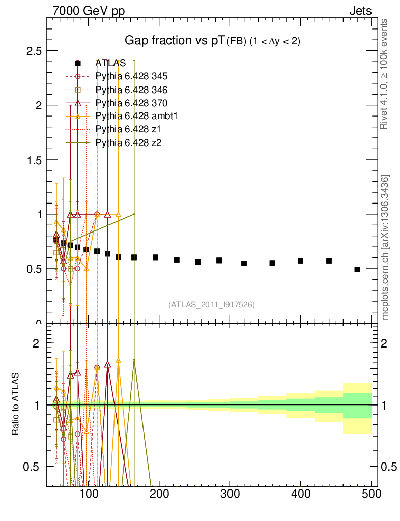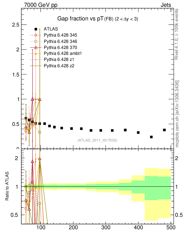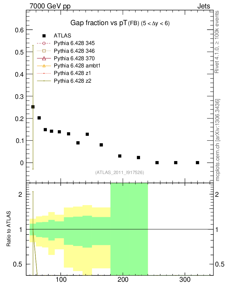 Jets : Jets + Veto : Gap fraction vs pT (FB)