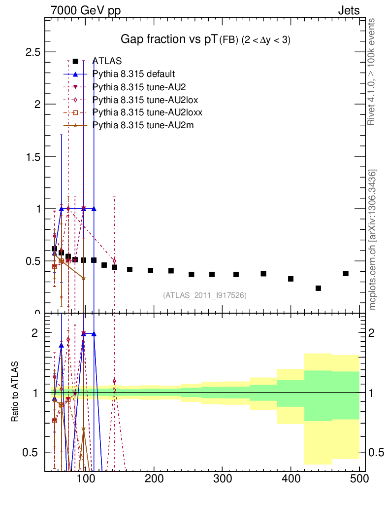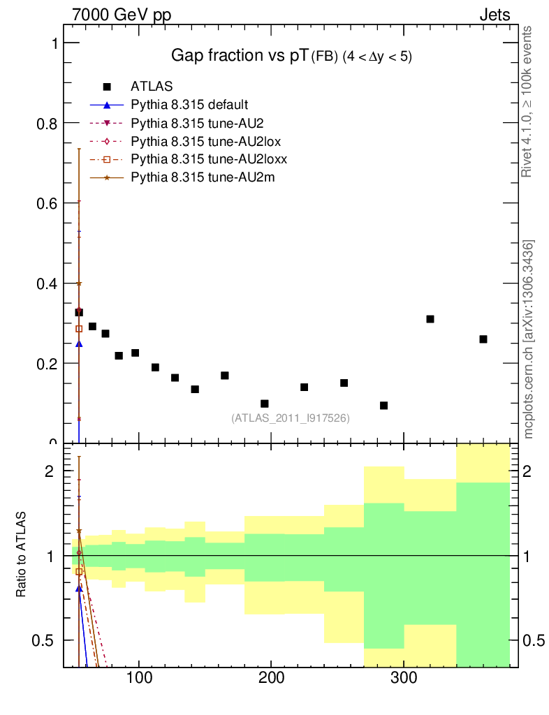 Gap fraction vs pT (FB)