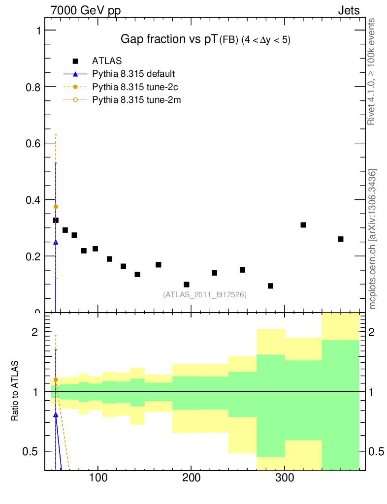 Jets : Jets + Veto : Gap fraction vs pT (FB)