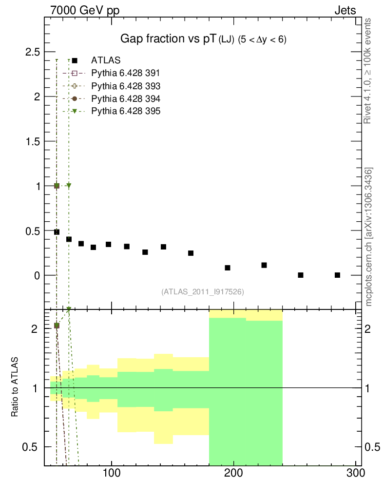 Gap fraction vs pT (LJ)