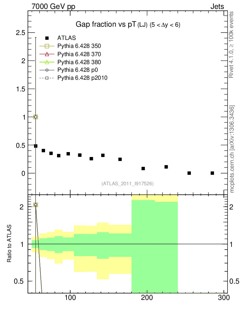 Jets : Jets + Veto : Gap fraction vs pT (LJ)