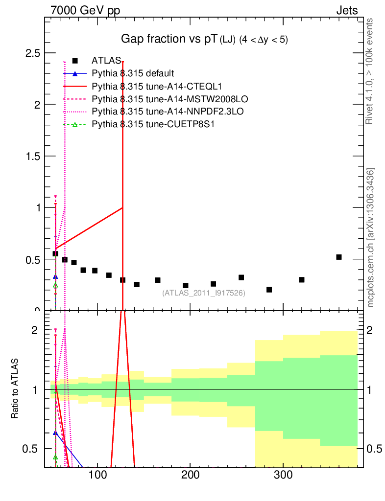 Gap fraction vs pT (LJ)