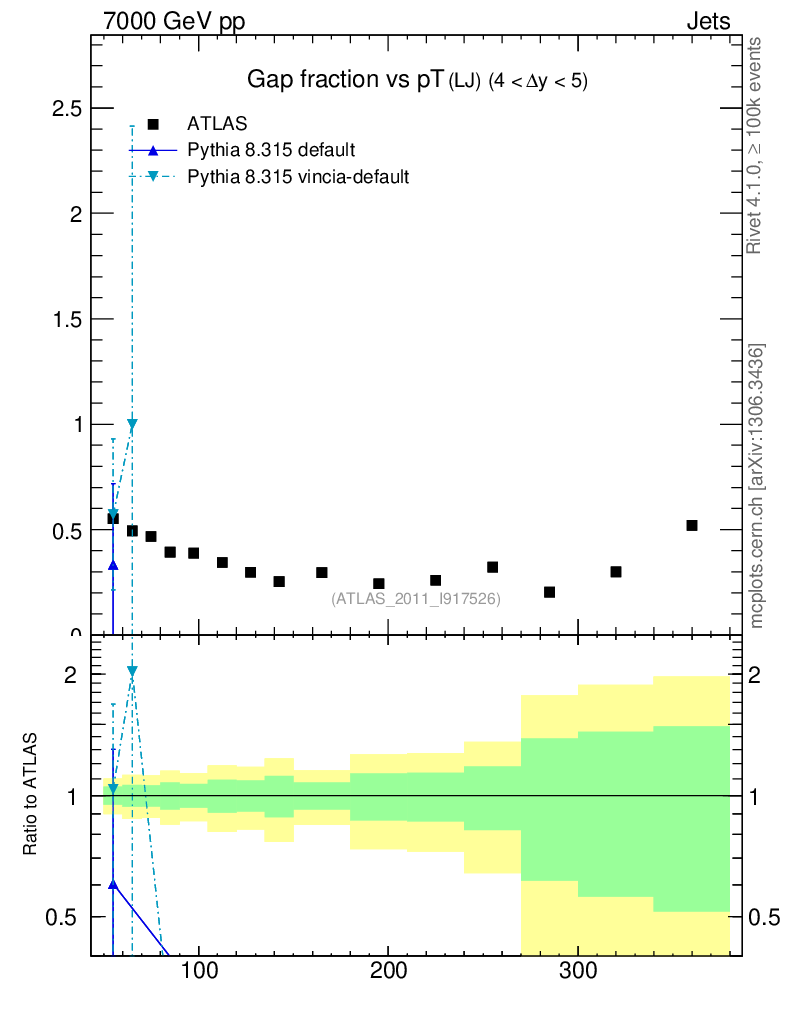 Jets : Jets + Veto : Gap fraction vs pT (LJ)