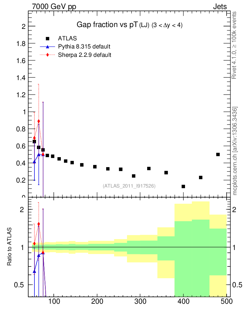 Jets : Jets + Veto : Gap fraction vs pT (LJ)