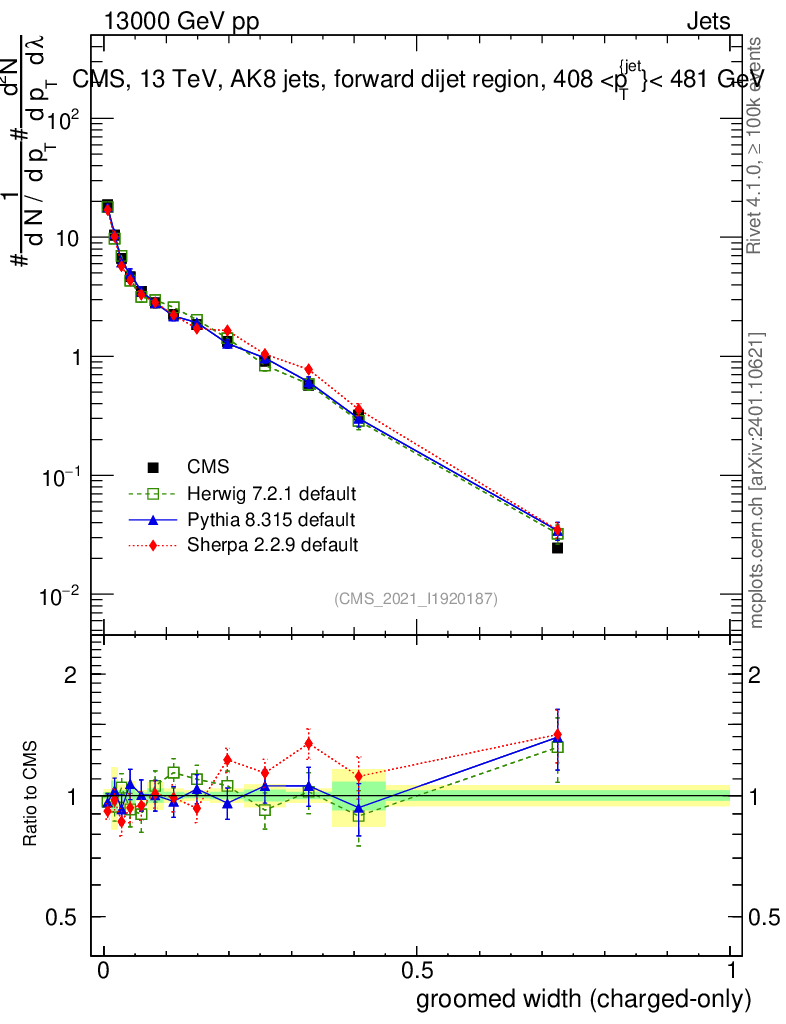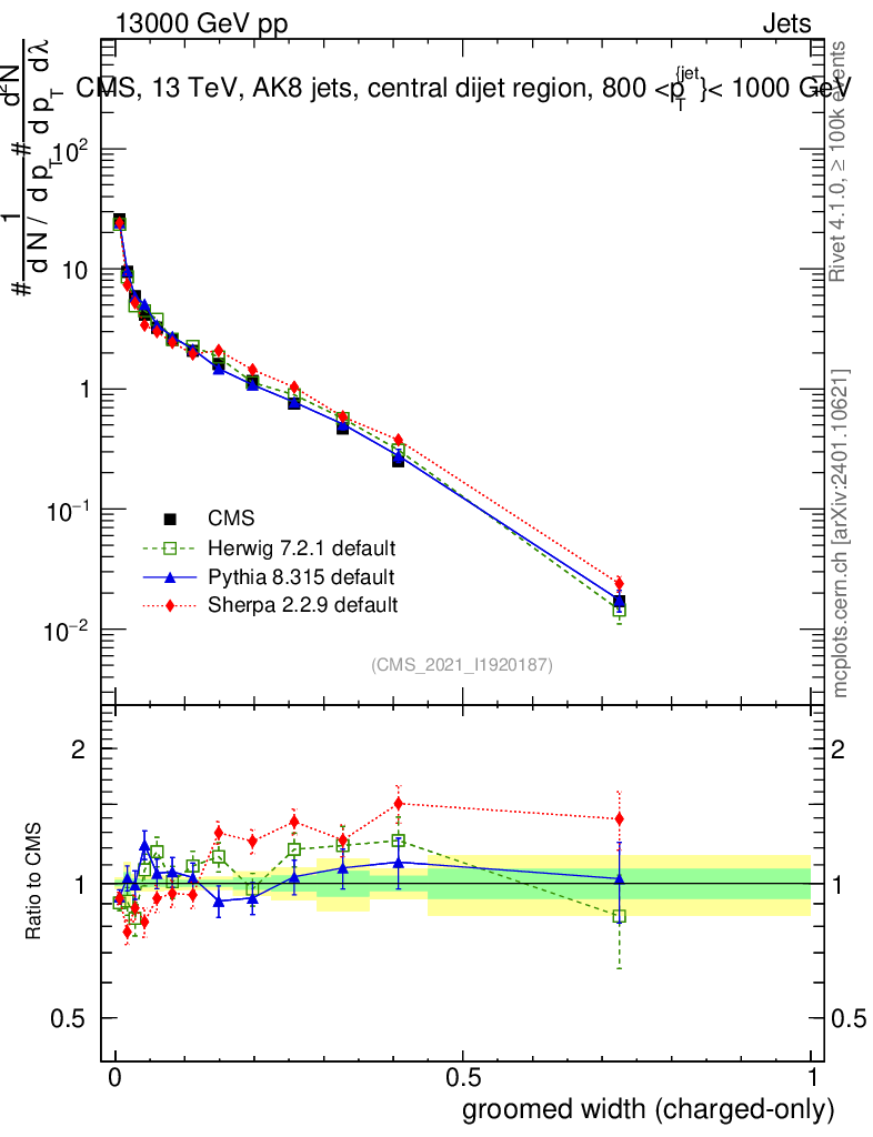 Jets : Generalized angularities : Groomed width λ11 (charged only)