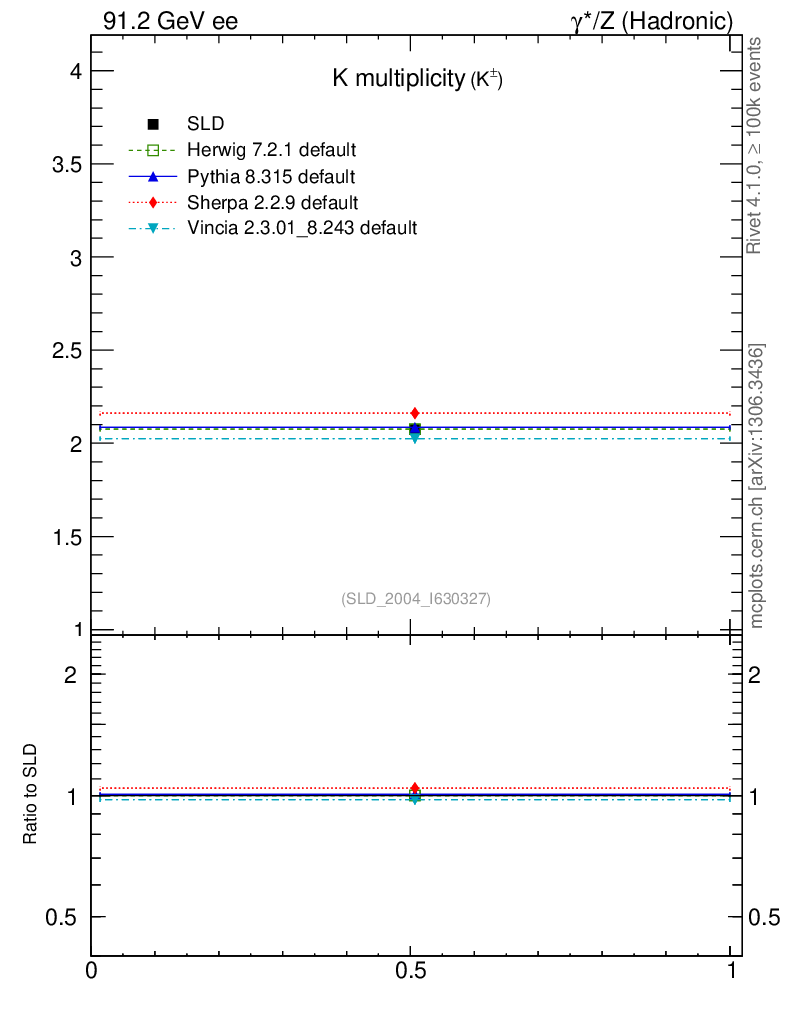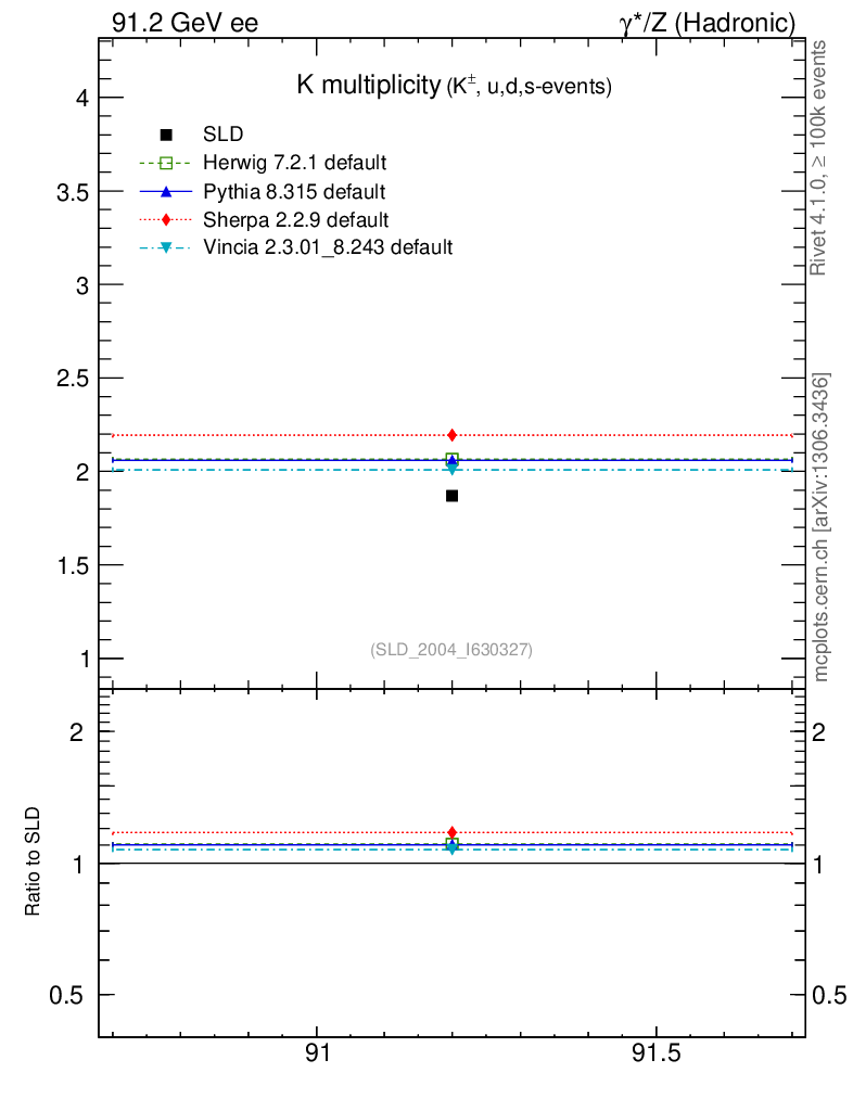 ee : γ*/Z (hadronic) : Identified Particles : K multiplicity