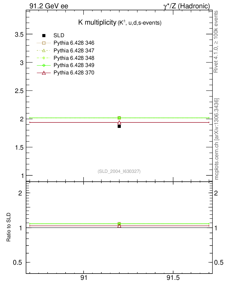 ee : γ*/Z (hadronic) : Identified Particles : K multiplicity