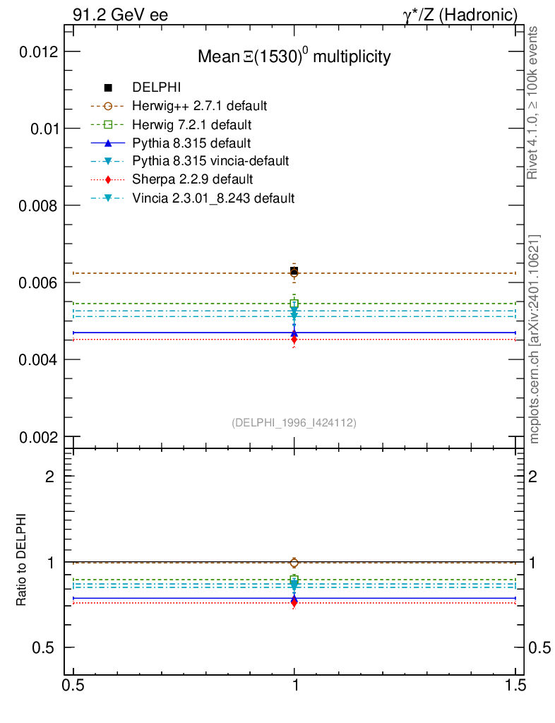 ee : γ*/Z (hadronic) : Identified Particles : Ξ(1530) multiplicity