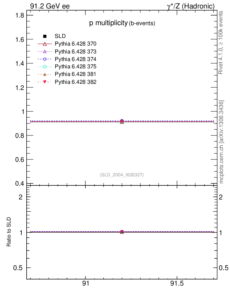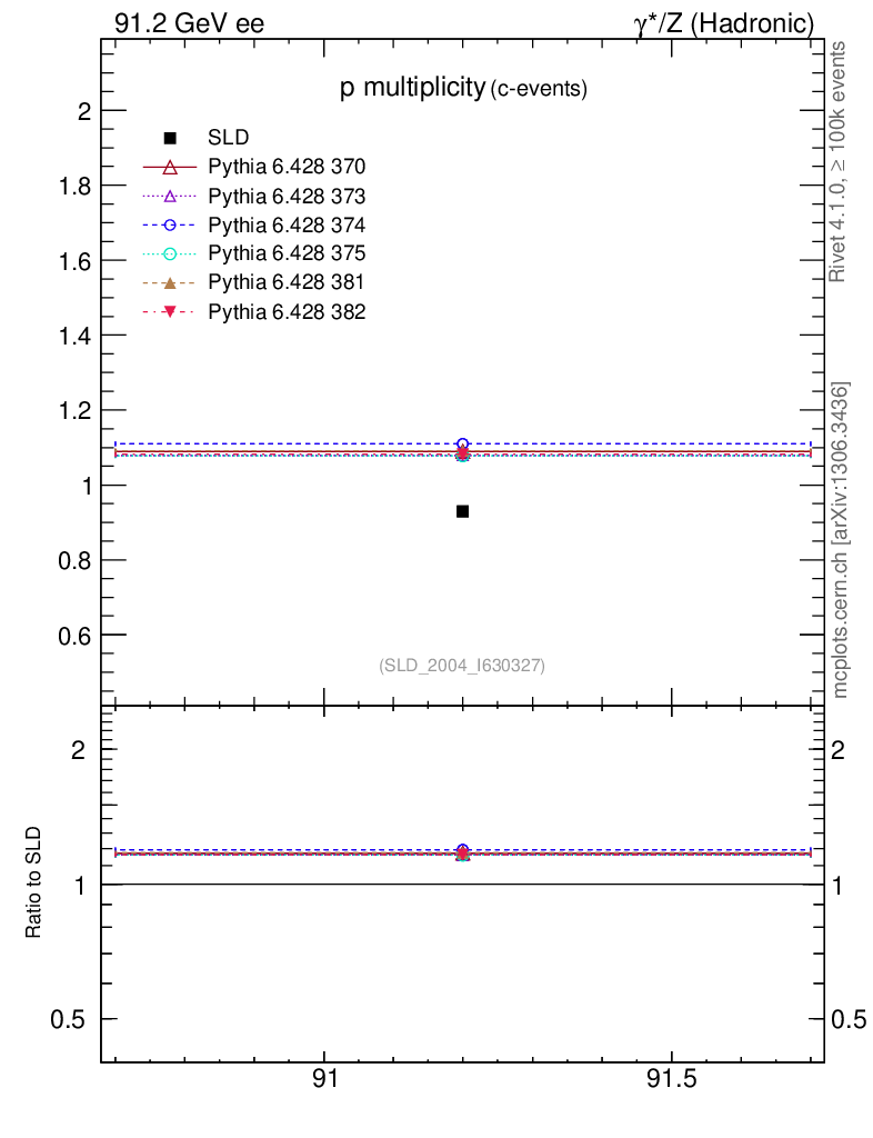 ee : γ*/Z (hadronic) : Identified Particles : p multiplicity