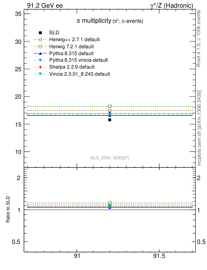 ee : γ*/Z (hadronic) : Identified Particles : π multiplicity