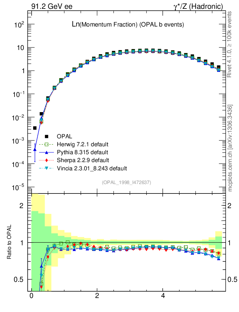 ee : γ*/Z (hadronic) : Charged Particles : Ln(x