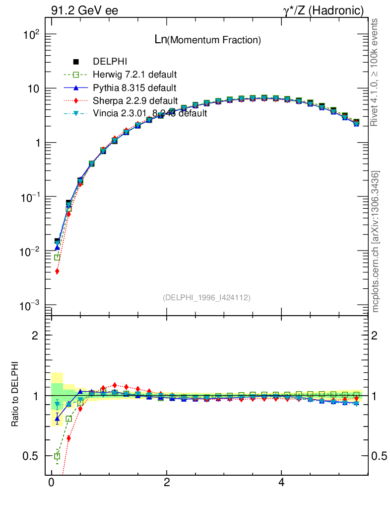 ee : γ*/Z (hadronic) : Charged Particles : Ln(x