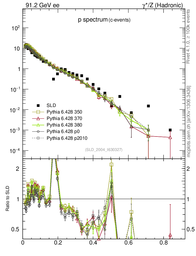 ee : γ*/Z (hadronic) : Identified Particles : p spectrum