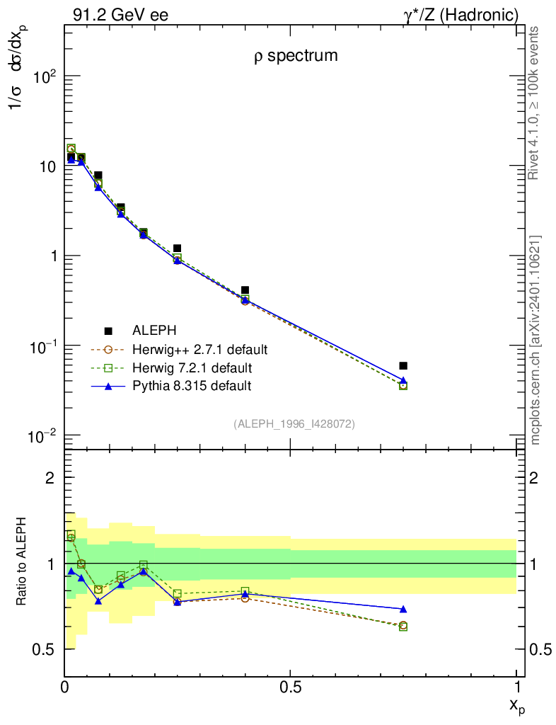 ee : γ*/Z (hadronic) : Identified Particles : ρ spectrum