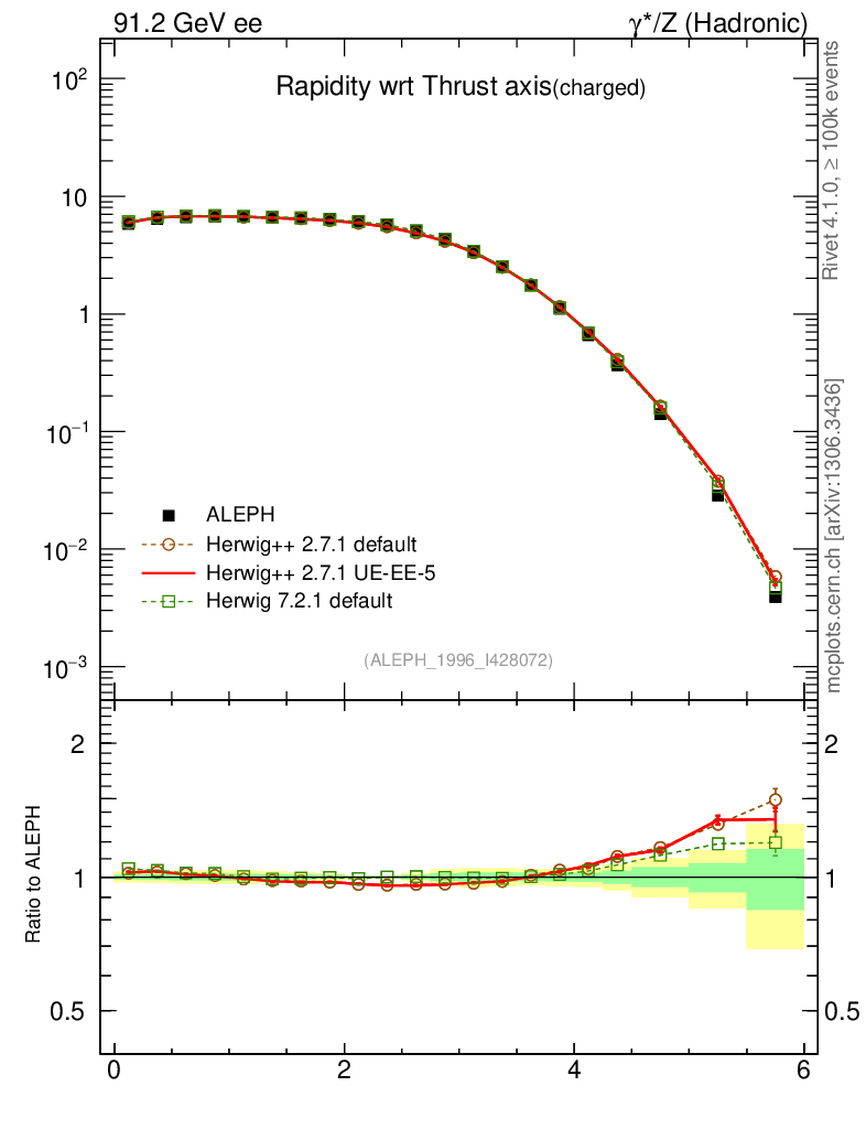 ee : γ*/Z (hadronic) : Charged Particles : Rapidity wrt Thrust axis