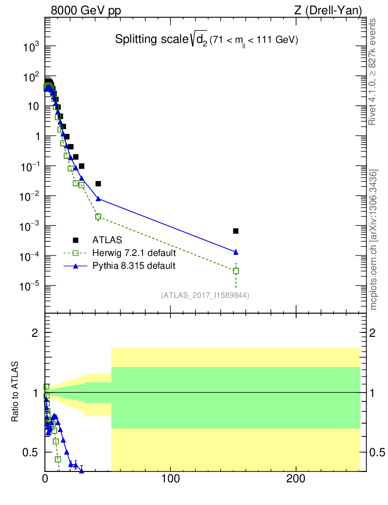 Z (Drell-Yan) : Jet Substructure : Splitting scale d2