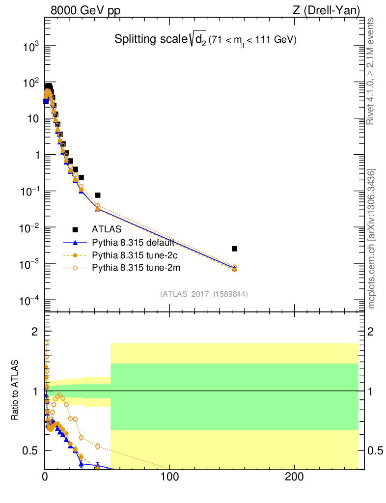 Z (Drell-Yan) : Jet Substructure : Splitting scale d2